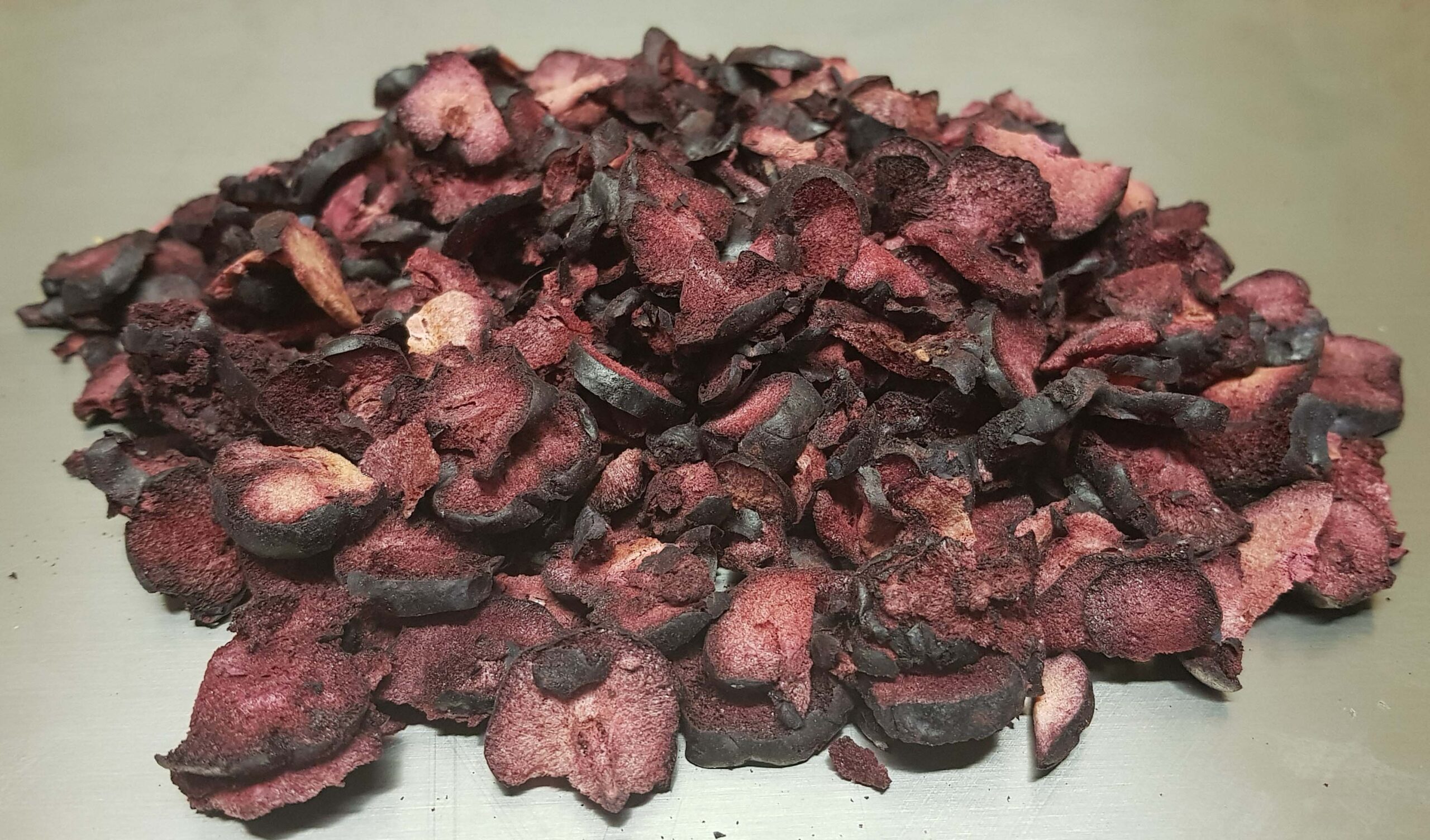 Jar of freeze-dried Illawarra plums, showcasing dark purple native Australian fruits used in sauces, desserts, and snacks